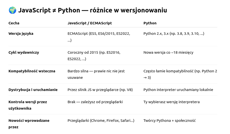 - syntax importu wymaga ścieżki względnej i rozszerzenia pliku (import { funkcja } from './modul.js';)